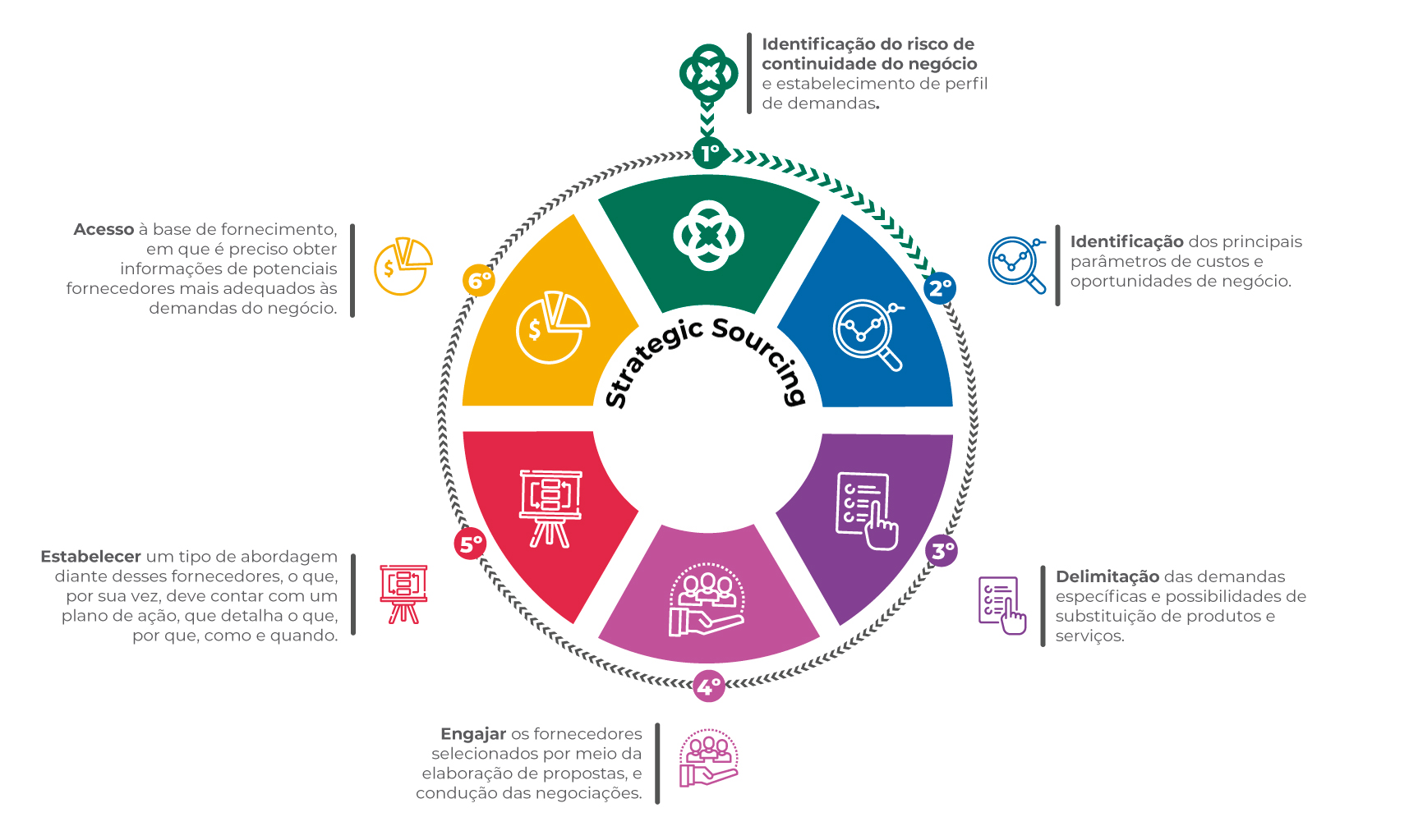 O conceito de strategic sourcing tem como principal objetivo, a avaliação da complexidade envolvida na compra de determinado serviço ou produto, de modo a analisar o impacto que tal obtenção gera para o negócio, com foco na coleta de dados do fornecedor com vistas a estabelecer um perfil de demandas, e formar uma base de fornecedores, para que seja possível selecionar aqueles mais adequados às demandas do negócio.